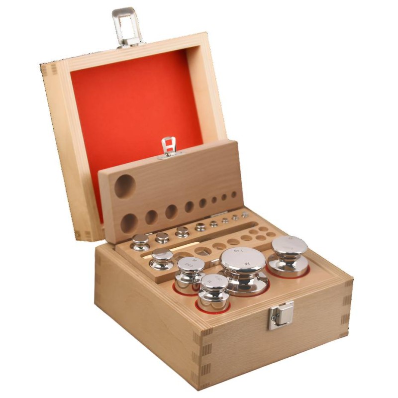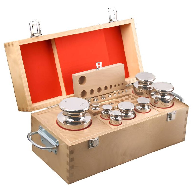 Pesiera Certificata Accredia con kit di pesi in ACCIAIO INOX OIML M1, adatti nelle applicazioni di metrologia legale e nel settore industriale. La classe di precisione M1 consente l'utilizzo di questa pesiera per il controllo e la taratura di bilance e strumenti di misura in classe III fino a 10.000 divisioni.