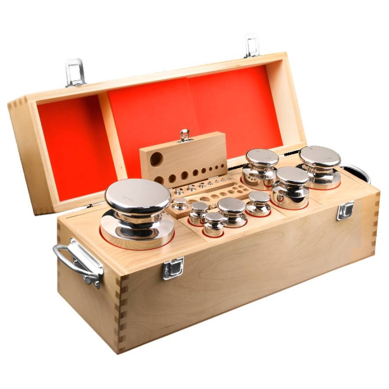 Pesiera in classe di precisione F1 certificata con pesi calibrati in acciaio inox. Composizione con pesi da 1 mg fino a 10 kg oppure personalizzate con pesi selezionati dal Cliente.La classe OIML F1 è per bilance di precisione in classe II fino a 100.000 divisioni. La fornitura include Taratura ACCREDIA / LAT con rilascio di certificato. Custodia in legno sempre fornita con guanti e pinzetta.