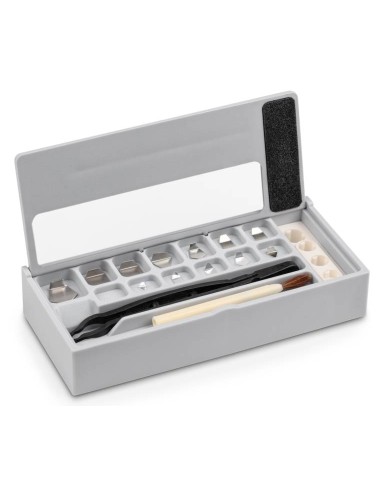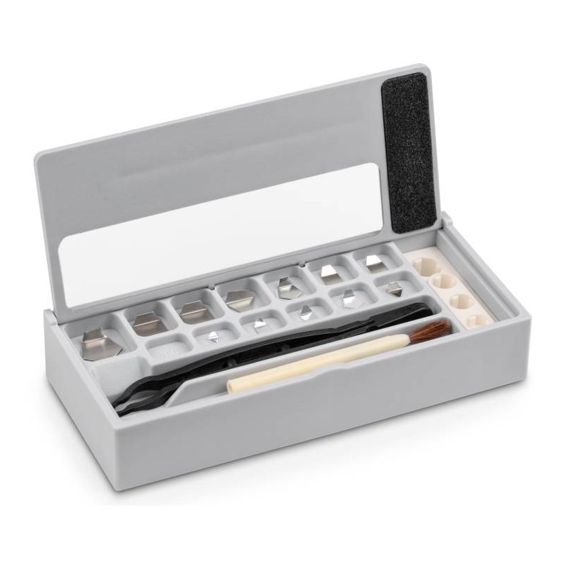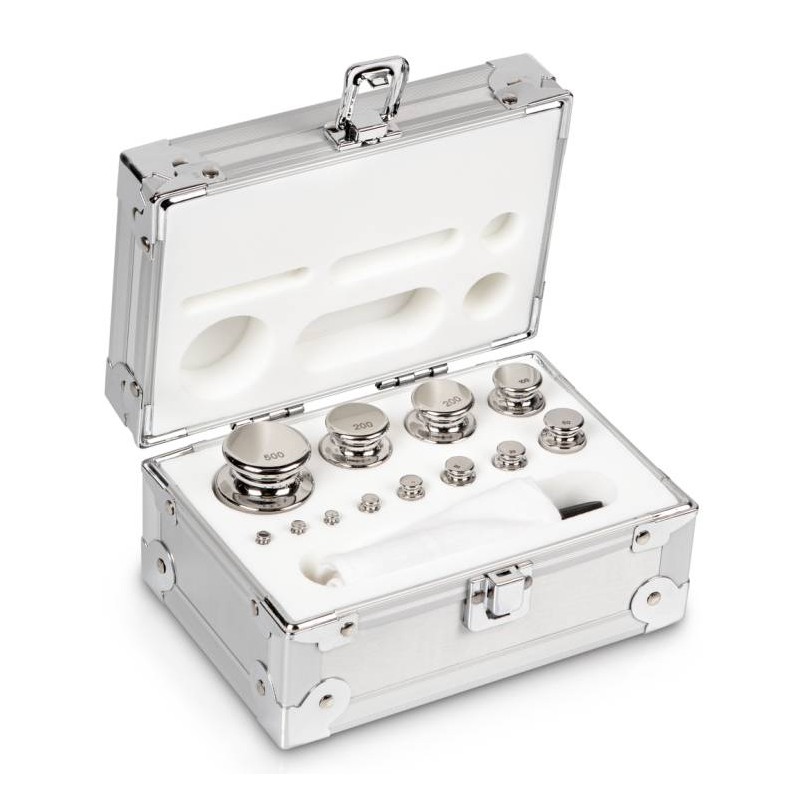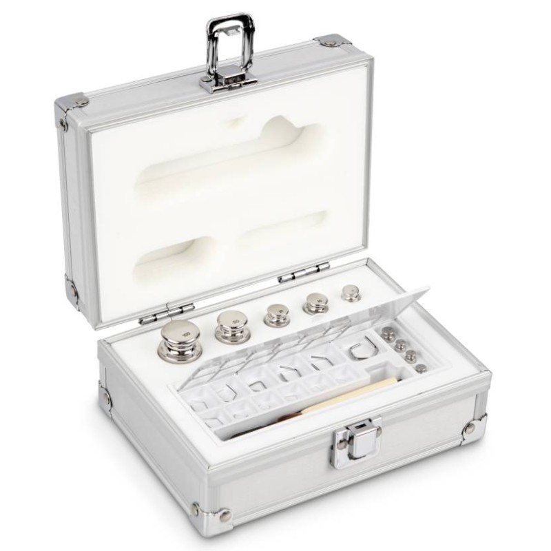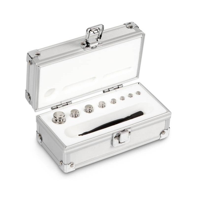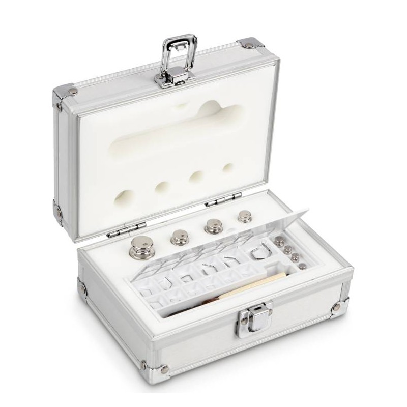 Pesiera Kern in classe OIML E1 per la taratura di bilance analitiche, semi-micro e micro, certificata LAT e composta come da set standard a partire da 1mg-500mg fino a 1mg-10kg in oltre 17 varianti. Disponibile sia nella classica custodia in legno che nella nuovo valigia in alluminio che offre il vantaggio di un minore peso proprio, una maggiore durata ed un prezzo leggermente ridotto. Solo per la pesiera 1mg-500mg la spedizione avviene con custodia in plastica.