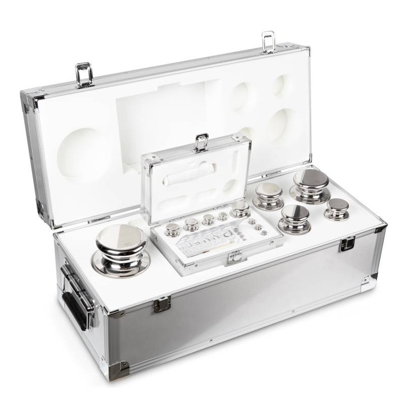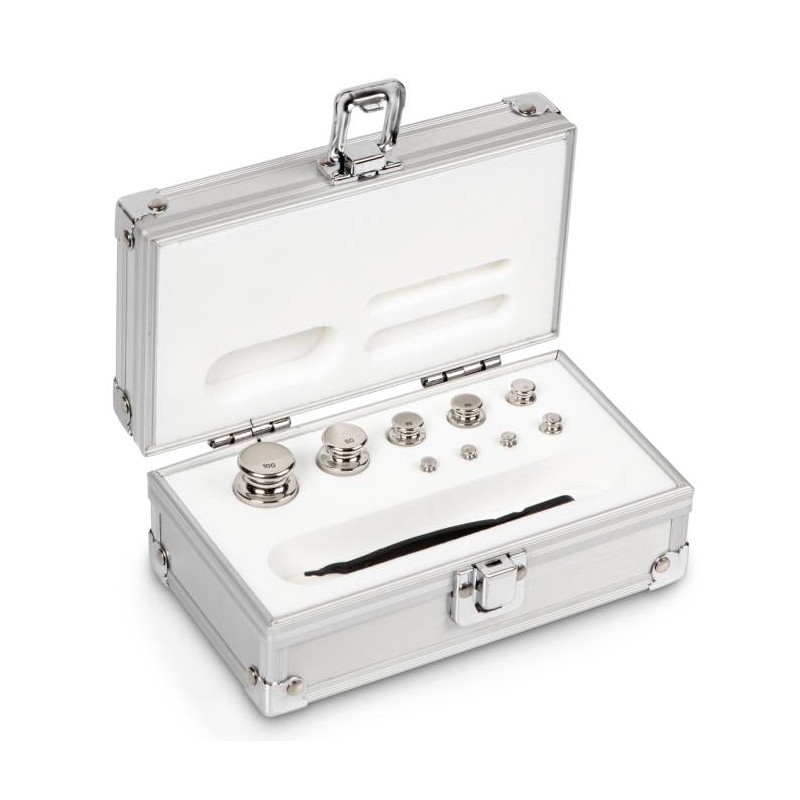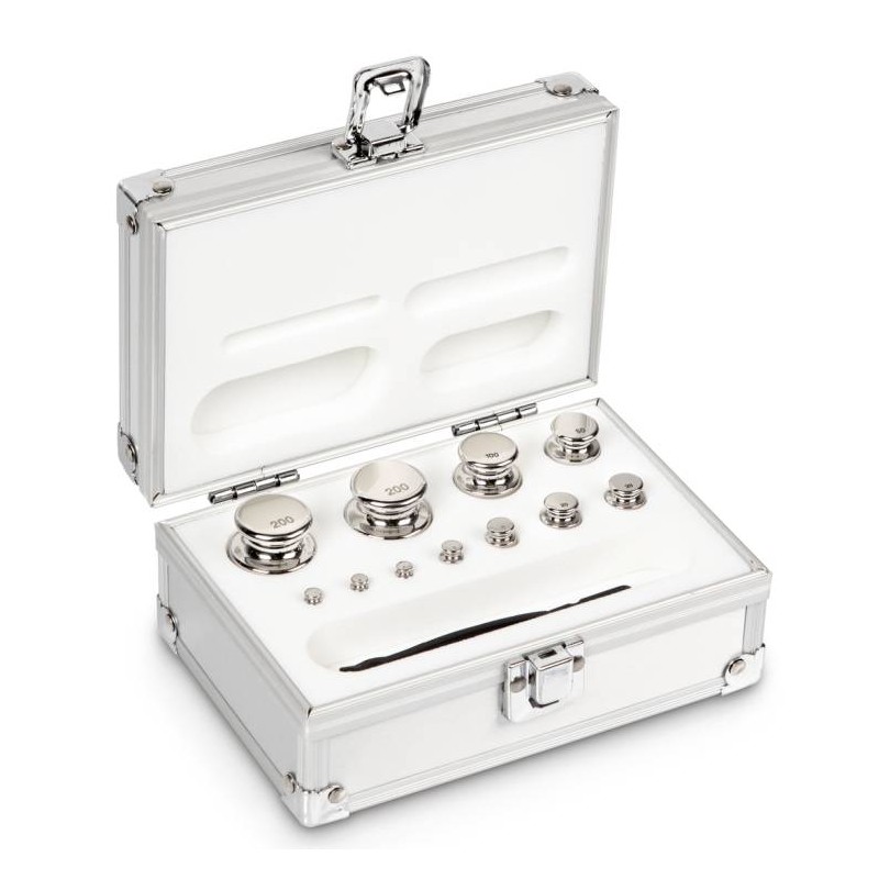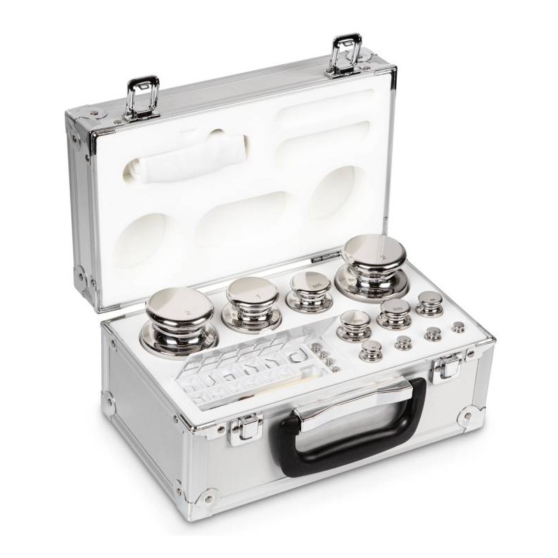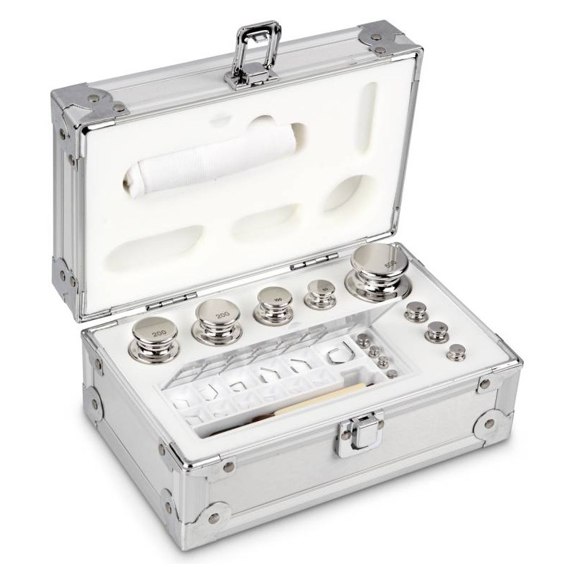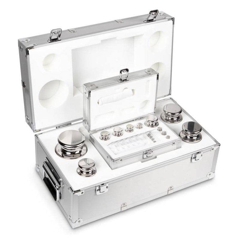 Pesiera Kern certificata in classe "E1" in conformità ai requisiti ISO/IEC 17025. Made in Germany, custodia in alluminio con pesi inox di pregiata qualità. Conformità OIML R111-2004. Disponibile nei set standard da 1mg fino a 10 kg. Certificato LAT nominativo. Prezzi particolari per laboratori di taratura e centri di ricerca. Gamma completa di accessori come guanti, pinzette, pennellini.