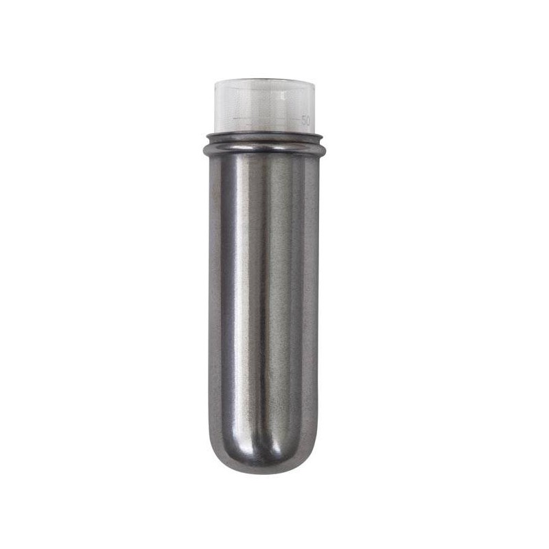 codice 40101042 : Portaprovette in acciaio per rotore A 6-50 e A 8-50, per provette a fondo sferico da 50 ml. Completo di provetta in vetro da 50 ml. (Ø x L) 30x110 mm
