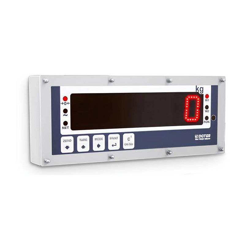 Indicatore / Ripetitore di peso con grande display a matrice di LED luminosi ad alta intensità. Particolarmente adatto per utilizzo in ambiente esterno visibile anche in piena luce solare, e dove occorre avere una lettura del peso a distanza da qualsiasi angolazione. Custodia completamente in acciaio INOX IP68. Omologabile CE-M (OIML R-76 / EN 45501).