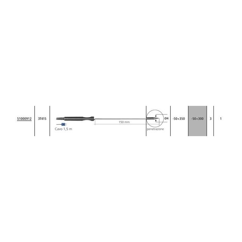Scheda Tecnica Sonda Termocoppia T 3T415 compatibile con termometro modello Temp 7 K/T.