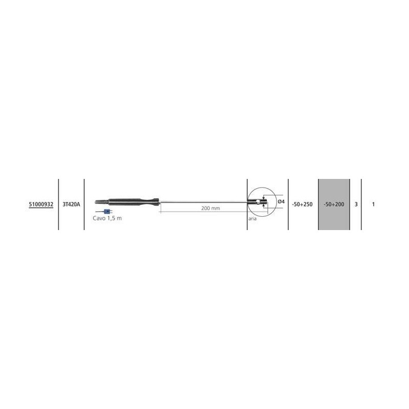 Sonda Termocoppia T 3T420A per Temperatura Aria | Classe 1