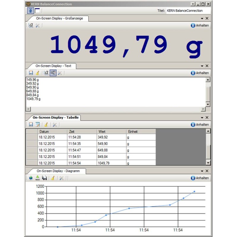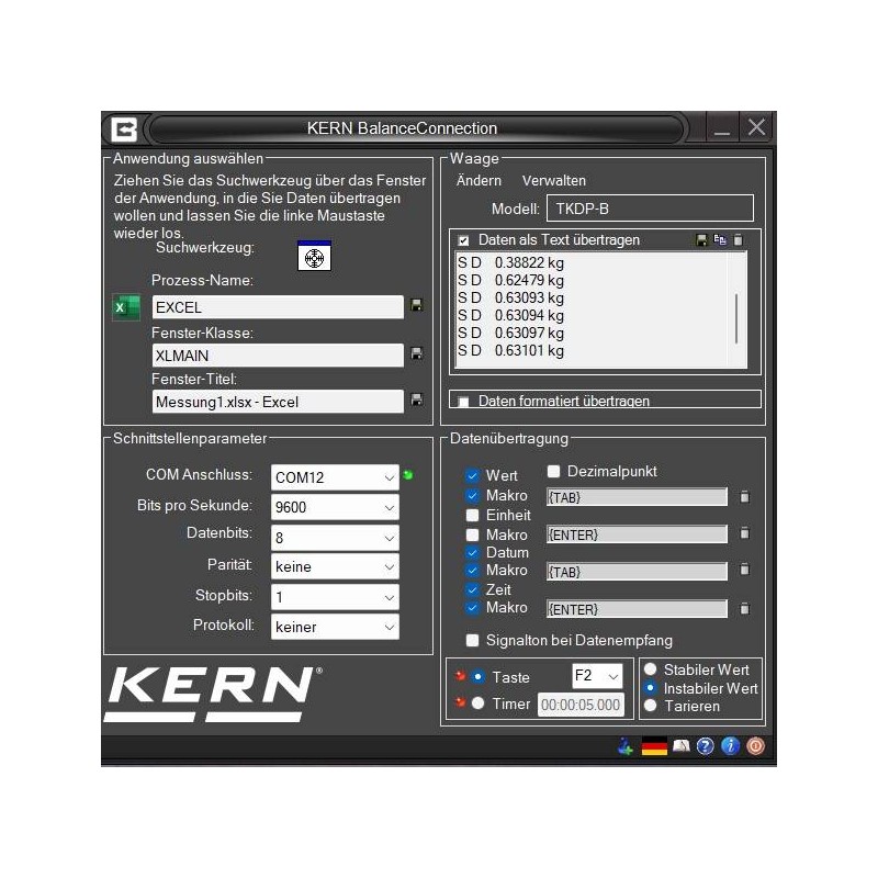 I protocolli di interfaccia delle bilance KERN (configurazione standard) sono già predefiniti. Possibilità di supportare altre bilance grazie alla configurazione flessibile.