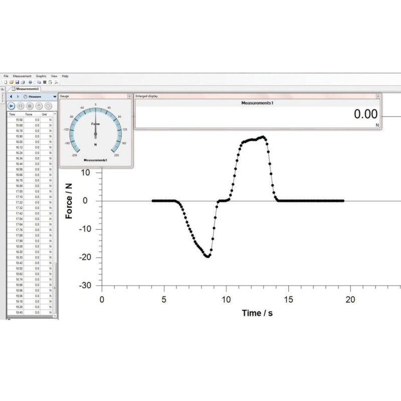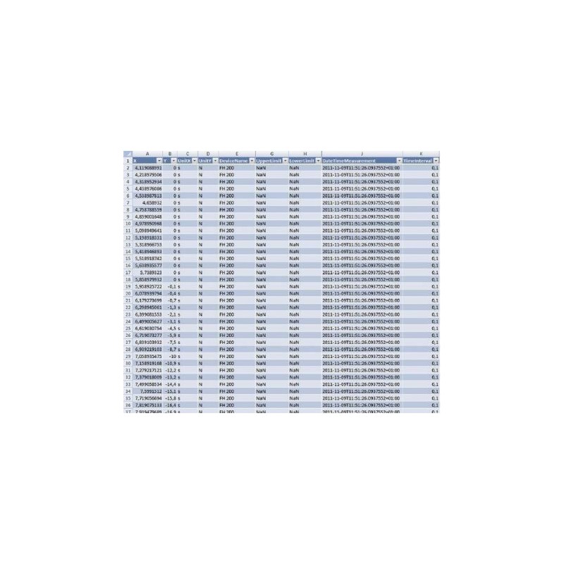 Questa trasmissione ad alta velocitá di trasferimento é possibile (fino a 20 dati al secondo) quando si associano con i misuratori di forza SAUTER (fino a 3 dati al secondo) e AFH FAST. Con il software AFH FAST si puó realizzare un grafico in relazione Forza-Tempo,e questi dati di misura possono essere esportati su MS Excel