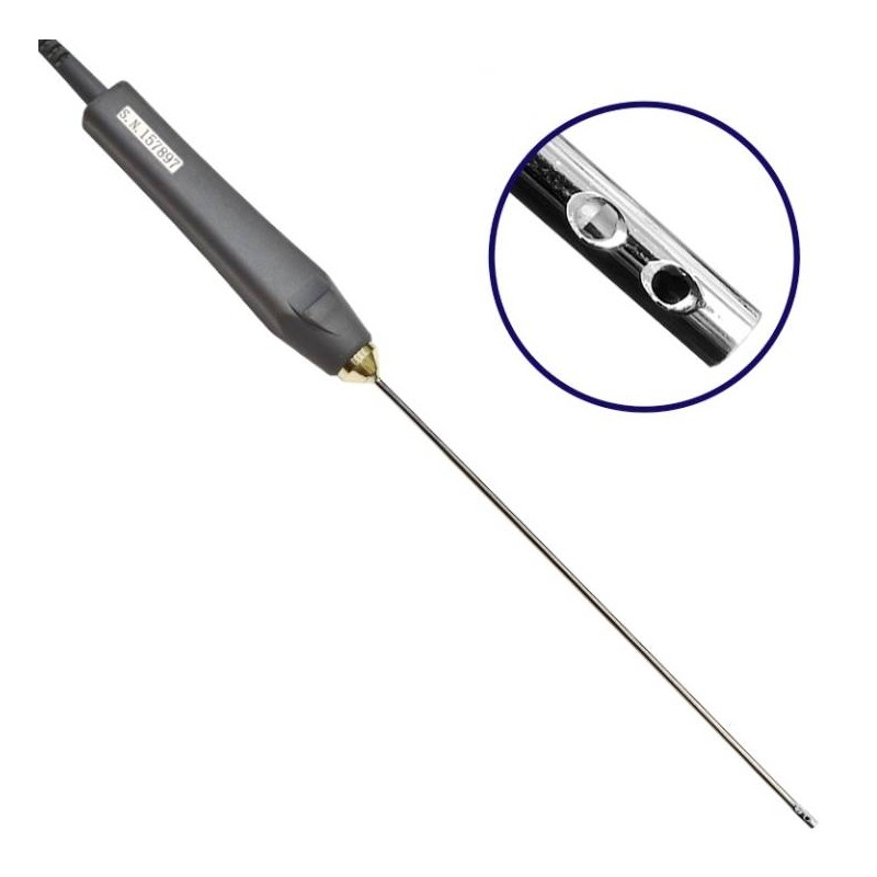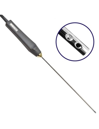 Sonda PT100 - PT56A. Con manico in materiale antiscivolo, resistente, piacevole al tocco e facile da pulire. Stelo resistente in acciaio inossidabile. Puntale aperto al passaggio del flusso d'aria. Esclusivamente per misure in aria. Compatibile con termometri pt100 Vio Temp7 e Temp70.