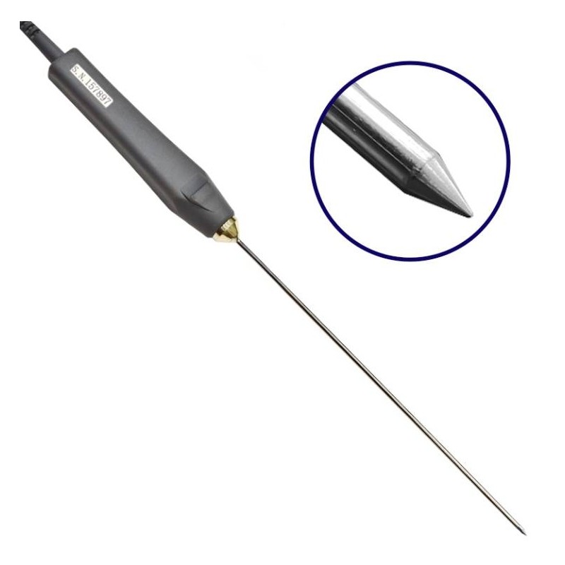Sonda di temperatura a PT100 - PT56P con Puntale a penetrazione per misure su campioni densi o semi-solidi. Manico con seriale, antiscivolo con stelo resistente in acciaio inox. Compatibile con termometri TEMP Vio.