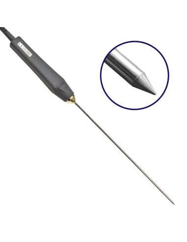 NT 7P sonda termistore penetrazione. Sonda di temperatura a termistore NTC 30K. Con manico in materiale antiscivolo, piacevole al tatto e facile da pulire. Stelo resistente in acciaio inossidabile. Puntale a penetrazione per misure in campioni densi o semi-solidi.