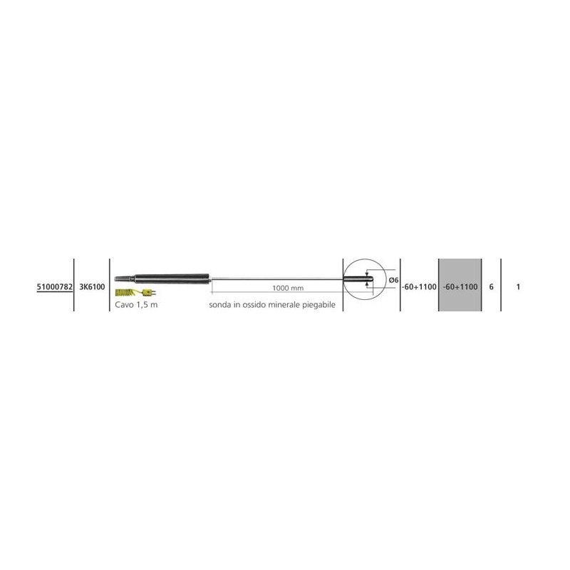 Termocoppia tipo K 3K 6100 stelo piegabile 1 metro