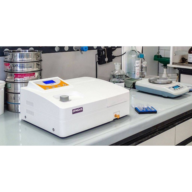 Spettrofotometro visibile ONDA V-10 Plus, con sistema ottico a fascio singolo. Il modello V-10 Plus è lo spettrofotometro automatico di base per il Visibile per analisi di controllo qualità e di routine, per i laboratori clinici e veterinari, per i laboratori didattici e per l’enologia. Completo di certificato di collaudo con Standard riferibili LAT DakkS.