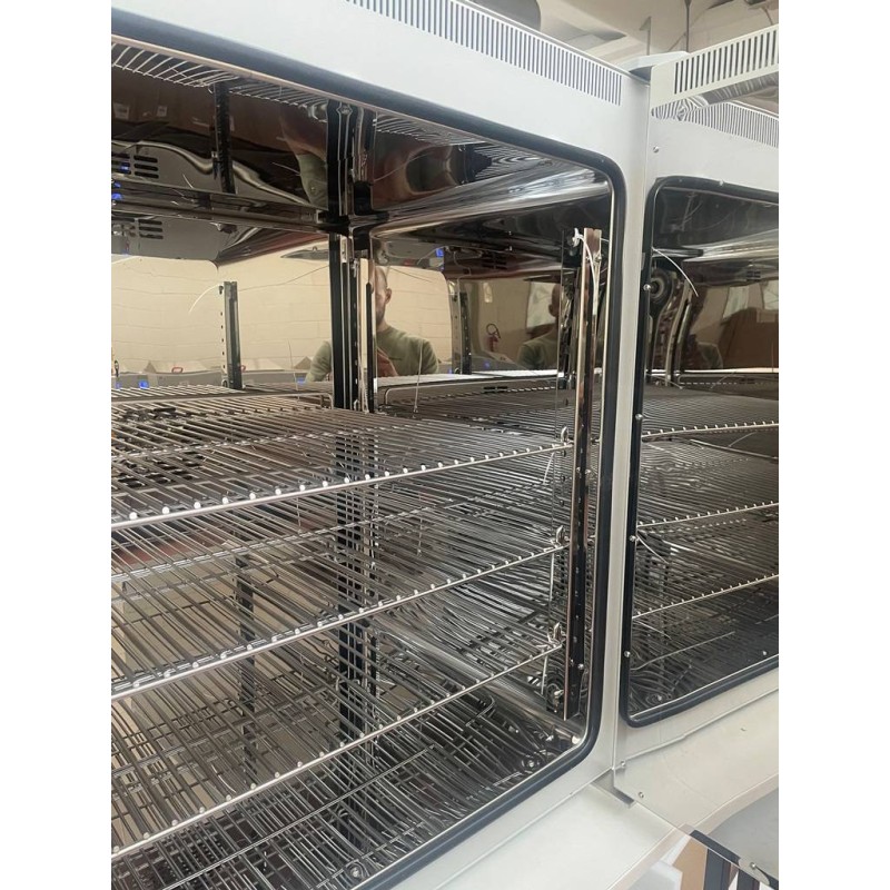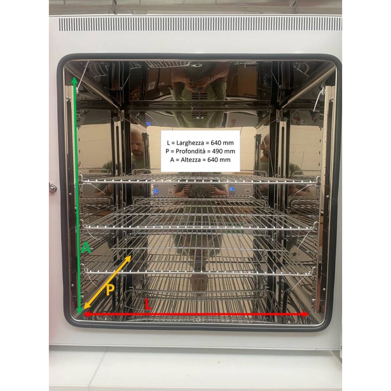 Campo di lavoro: da 10° oltre la temperatura ambiente fino a 300°C. Volume utile 200 Litri. Variazione della temperatura nel tempo a 150°C: ±0,4°C, uniformità della temperatura nello spazio a 150°C: ± 2%.