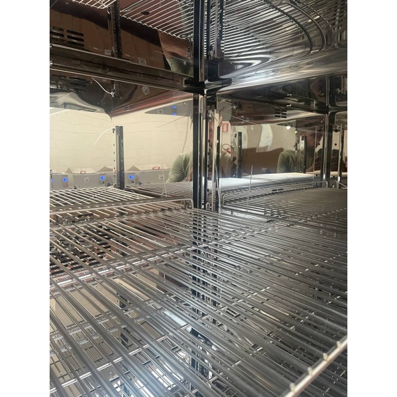 Camera in acciaio inossidabile con supporti per i ripiani completamente removibili per una facile pulizia. Fornita con due ripiani in acciaio grigliati. Dimensioni esterne ( base x altezza x profondità ): 945 x 870 x 755 mm. Peso 103 Kg.