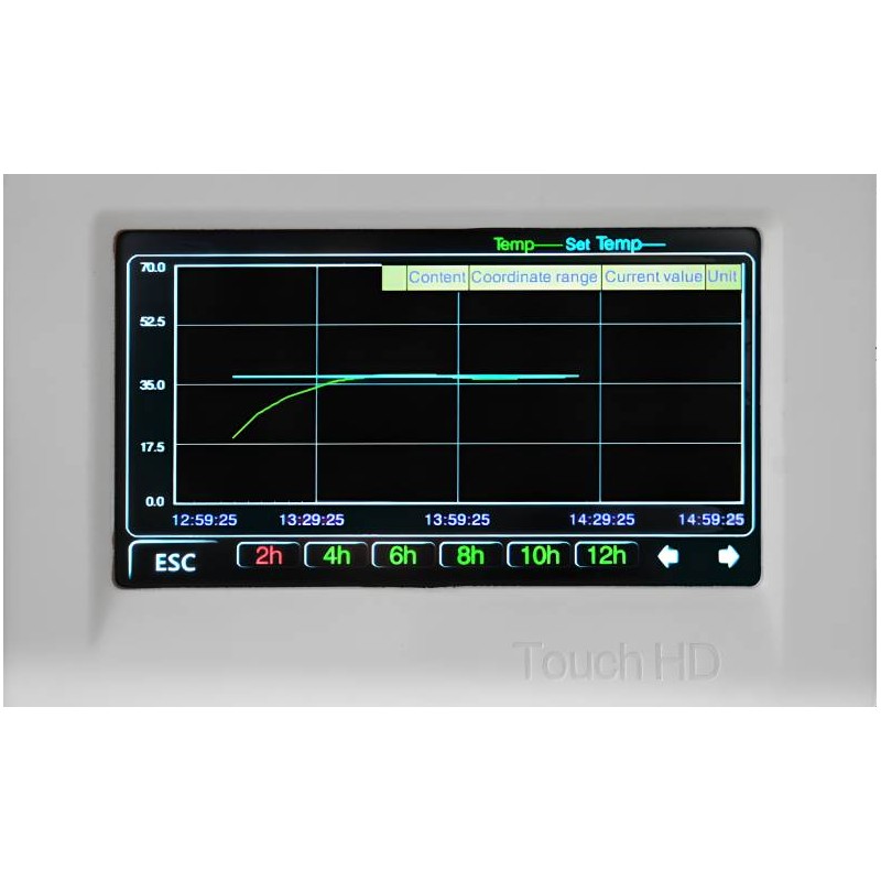 La stufa ARGOLAB ventilata nella capacità da 200 litri ha tutto a bordo . Super con Display a colori touch screen per la selezione delle diverse funzioni. Tutti i parametri su un’unica schermata: temperatura, velocità ventola, tempo, numero di programma e step, memorizzazione e download dati. Classe di sicurezza 3.1 (norma DIN 12880), Test di temperatura e certificato di taratura