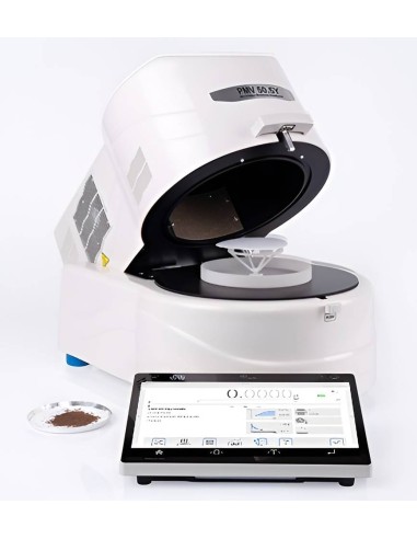 L' analizzatore di umidità Radwag PMV 50.5Y si basa su un sistema avanzato con una memoria espansa da 16 GB che consente di salvare e archiviare report sofisticati e grafici temporali e statistici. La comunicazione wireless migliora l'ergonomia e la sicurezza operativa. Il Wi-Fi integrato consente l'invio di dati tra l'analizzatore di umidità e un dispositivo mobile. L'ampio touch screen da 10'' garantisce comfort di utilizzo. I sensori di prossimità garantiscono l'accesso senza contatto alle operazioni specificate dall'utente. Può essere utilizzato con successo ovunque vengano essiccati materiali contenenti grandi quantità di acqua. Questi materiali sono, ad esempio, latticini, pesce, carne, prodotti a base di frutta, sciroppi, creme o resina liquida.
