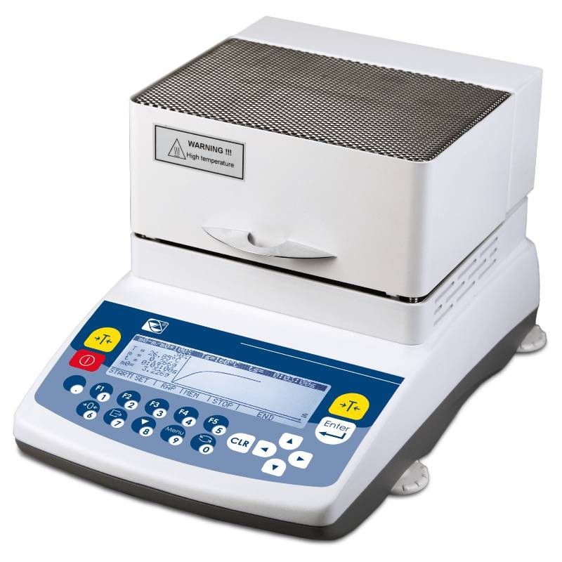 Termobilancia ALGM, il modello perfetto per le misure di umidità su campioni pesanti.La portata è di 210 grammi. Il display LCD e la tastiera impermeabile garantiscono un'elevata facilità di immissione e lettura dei dati. Essiccazione assicurata dall'azione di due lampade alogene da 200W per una temperatura massima di 160°C. Collegamento a PC e stampante permette di elaborare e stampare.