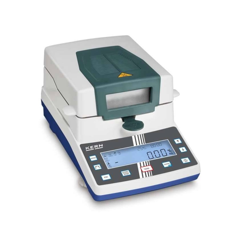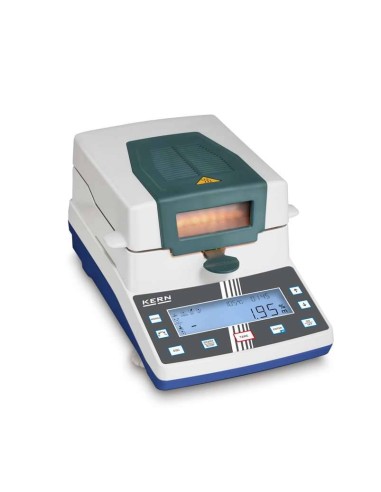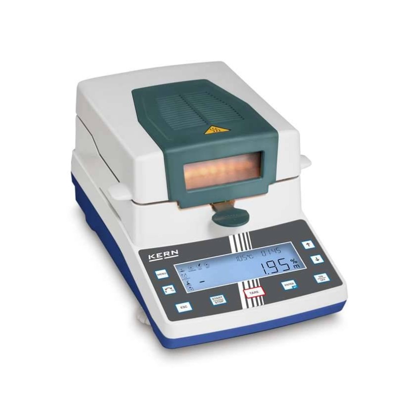 Termobilancia Kern DAB 100-3, l'analizzatore di umidità più conveniente e pratico con display grafico "parlante" e facile da consultare con 15 memorie per i programmi di essiccazione personalizzati. La più venduta.