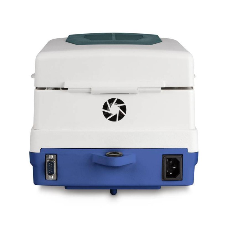 Essiccazione attraverso la potente e veloce lampada alogena in vetro al quarzo con 400 W di potenza. Una pratica finestra permette il controllo e la visione del campione.