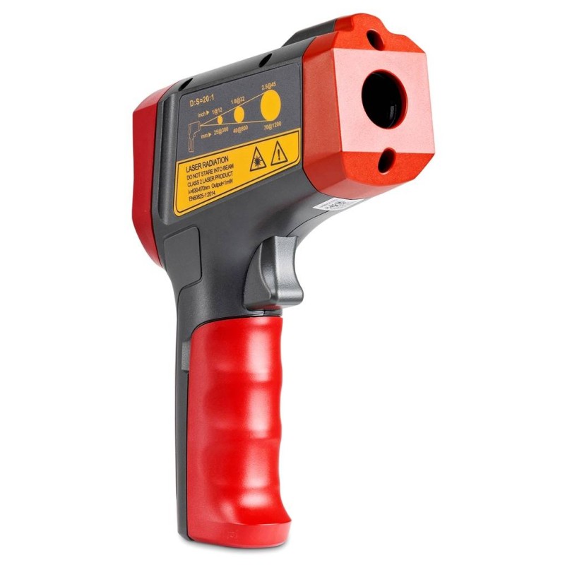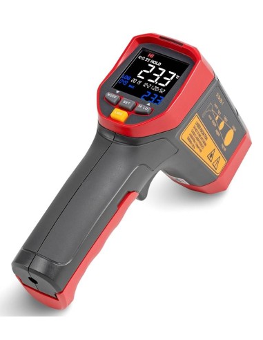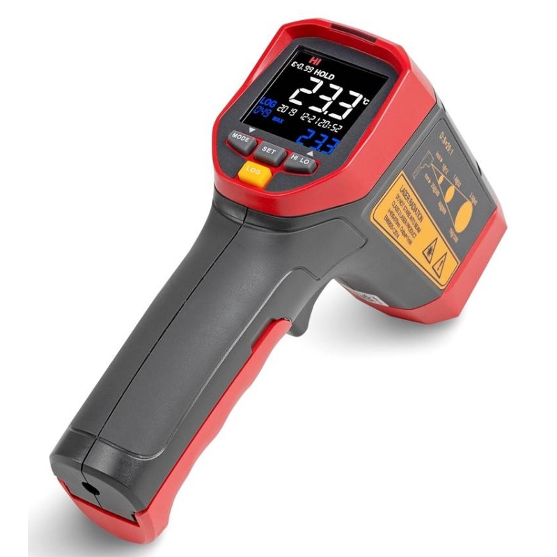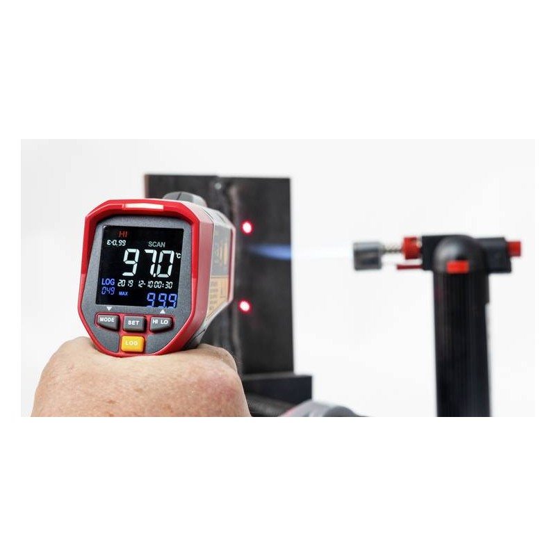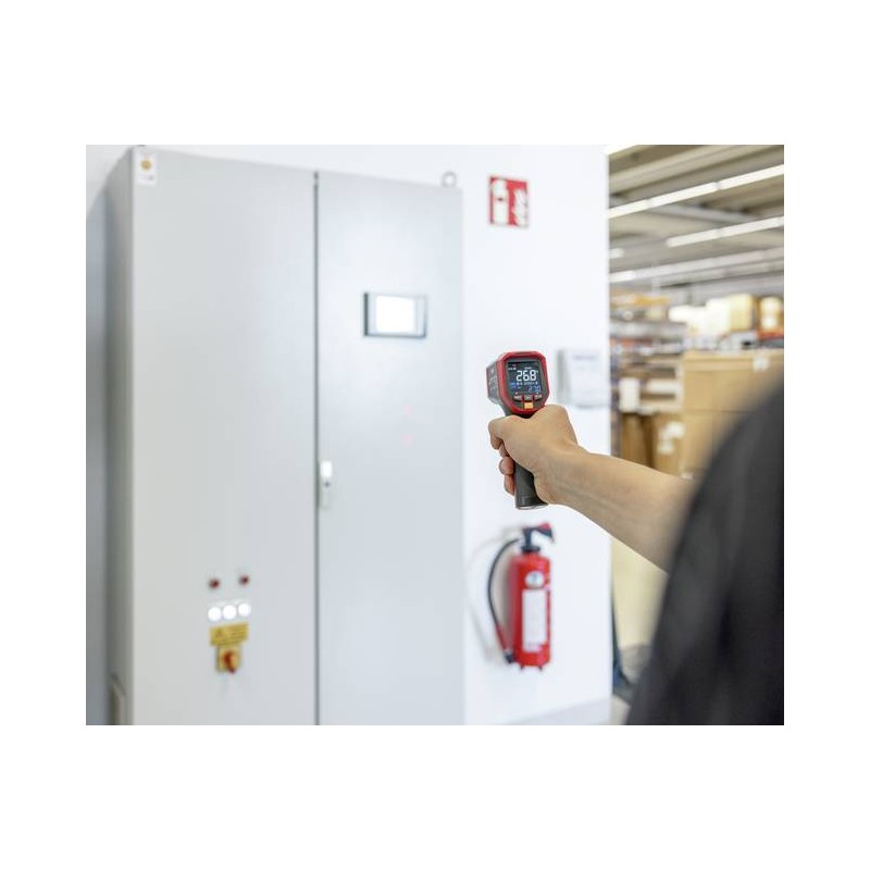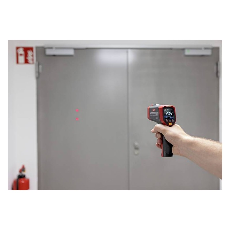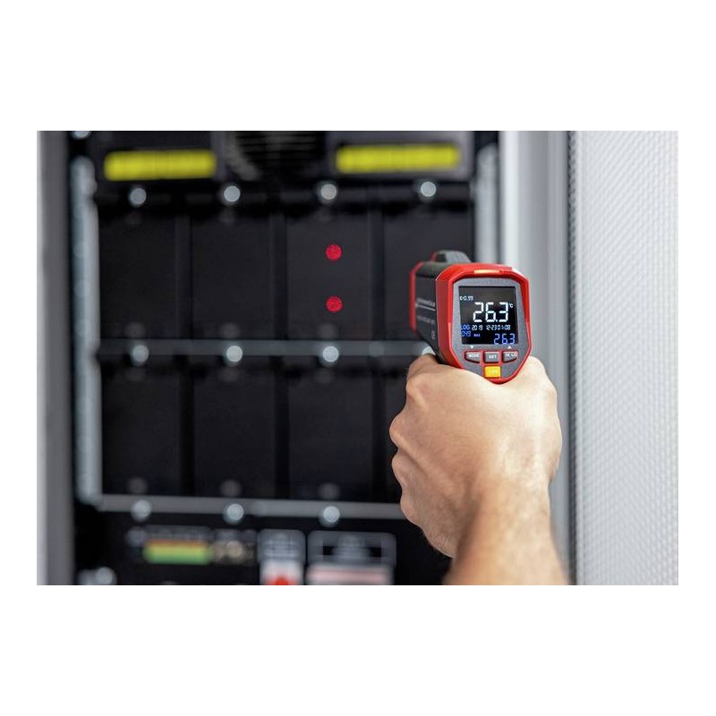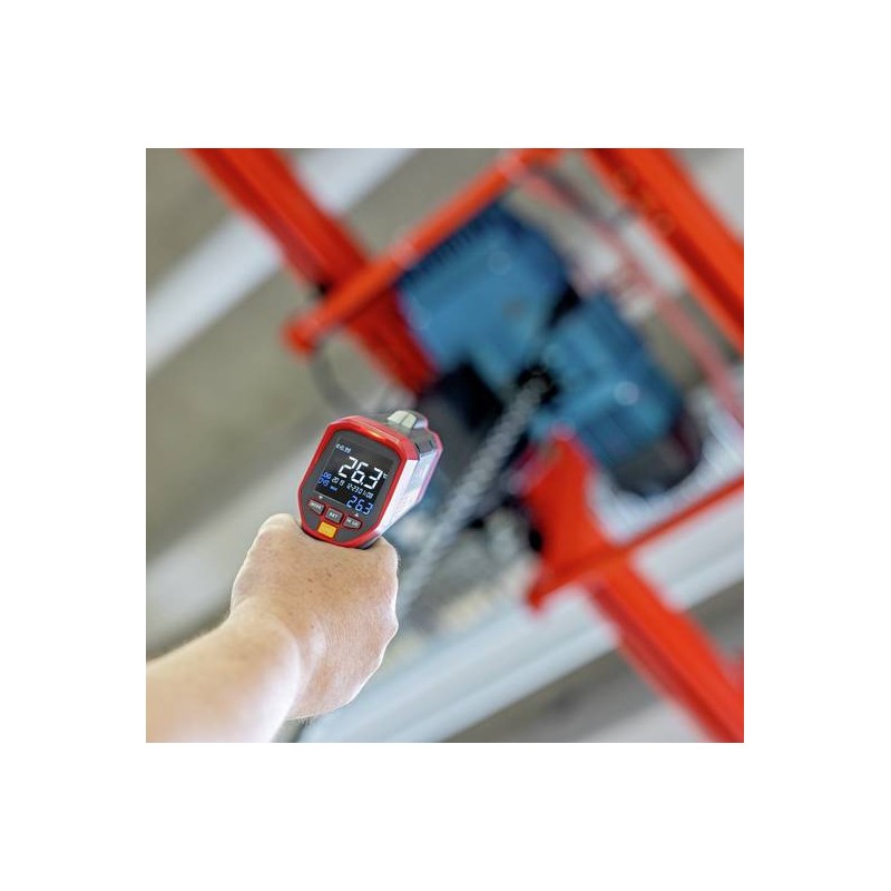 L'applicabilità di questo termometro spazia ampiamente: dalla verifica delle temperature in processi industriali come la lavorazione dei metalli e la meccanica, alla gestione di ambienti agricoli, fino alla ricerca in laboratorio e alla cura di impianti, inclusi quelli eolici. Il design include un laser doppio per un targeting di precisione e supporta la funzione Hold, che blocca sul display la temperatura rilevata al momento della misurazione.