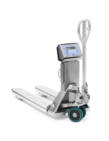 Transpallet pesatore ATEX TPWIEX2GD. La sua struttura è forte, in acciaio INOX. È compresa nella struttura in acciaio anche la pompa di sollevamento. Le sue ruote sono gommate mentre le ruote di carico presentano un rivestimento in poliuterano. È certificato per operare in aree ATEX che sono a rischio esplosione. Presenta un sistema di quattro celle di carico anch’esse in acciaio inox. La sua forza è la precisione di misurazione del peso. È in grado di sollevare fino a 2000 chili. Il display LCD è di 25 millimetri e presenta un alto contrasto. Per questa ragione è visibile anche in ambienti bui dove la luminosità scarseggia. La tastiera è completamente impermeabilizzata, presentando 17 tasti di tipo alfanumerico. La sua alimentazione è a batteria estraibile ed è possibile procedere alla ricarica, in un ambiente sicuro.