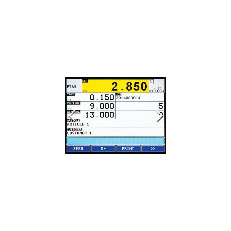 Totalizzazione e Dosaggio, in carico/scarico, formulazione; funzionamento come terminale PC (protocollo di comunicazione data entry); archivio 1000 articoli; 200 clienti / fornitori, 300 tare, lettura codici a barre per selezione articoli con testi configurabili e stampabili (esempio: Codice, ID lotto, ID operatore, numero turno, etc.).