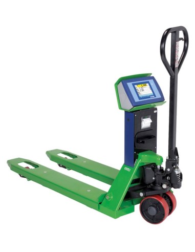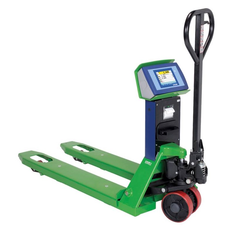 Transpallet pesatore TPWTS TOUCH SCREEN. Questo modello è sviluppato come un transpallet completo nel campo riguardante la pesatura mobile. Possiede uno schermo di tipo touch screen a colori. In questo modo è possibile visionare i dati più precisamente e permette una gestione avanzata di tutte le funzioni possibili dell’apparecchio, semplicemente sfiorando lo schermo. È possibile anche provvedere alla personalizzazione delle stampe in modo semplice, con l'installazione di software dedicati che permettono una maggior precisione nelle operazioni di pesatura. Molte sono le interfacce e i software disponibili da installare su questo apparecchio. In questo modo il trans pallet si trasformerà in uno strumento in grado di permettere la pesatura e di trasferirla al sistema informatico dell’azienda.