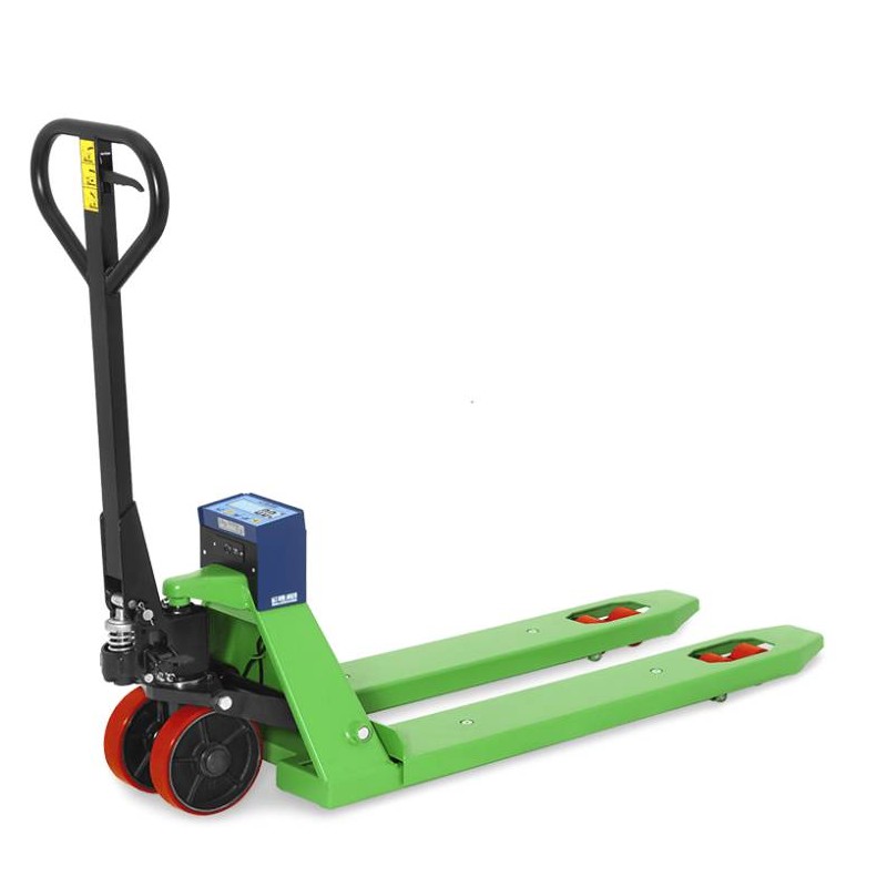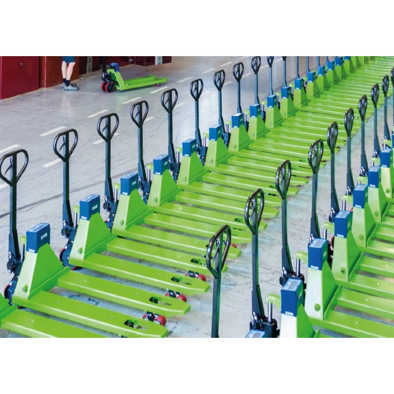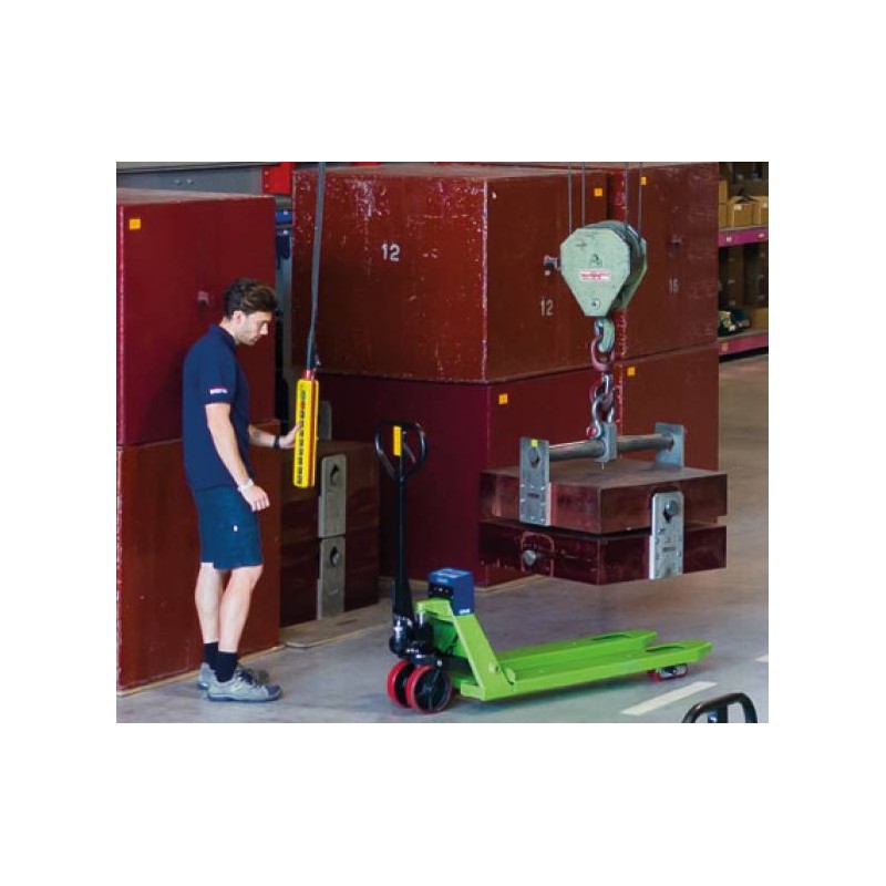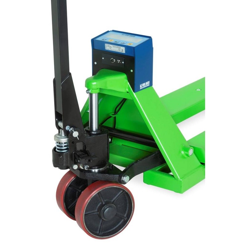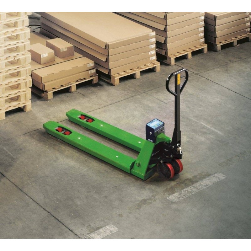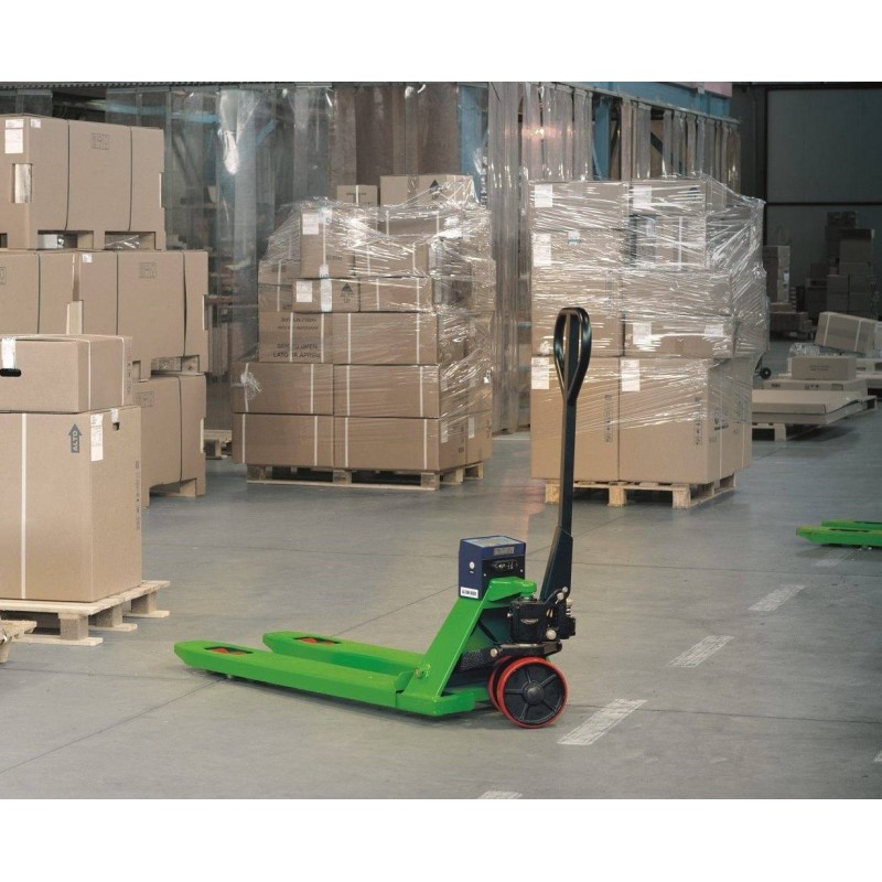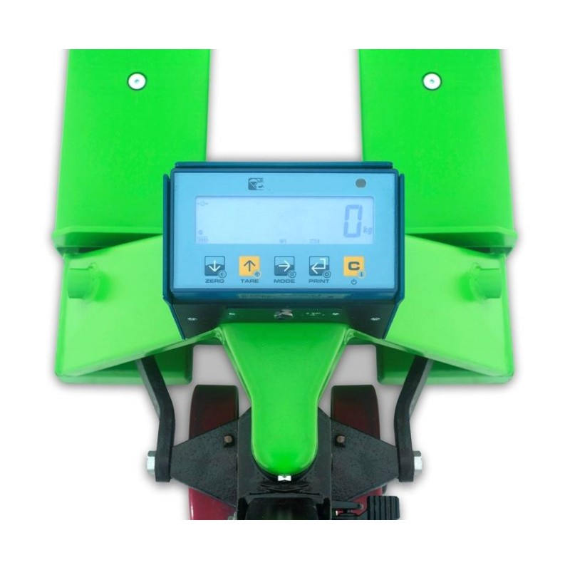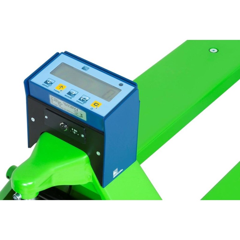 Caratteristiche uniche : 2000 kg di capacità di sollevamento e pesata con una risoluzione di 200 grammi, unico transpallet sul mercato a disporre di questa divisione di lettura su tutta la portata.