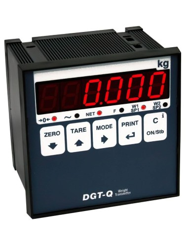 Trasmettitore di peso con tastiera impermeabile semplificata a 5 tasti. Display a LED rossi ad alta efficienza ed involucro da pannello in Abs a norme DIN per montaggio a pannello. Trasmettitore collegabile fino a 8 celle di carico analogiche con resistenza di ingresso 350Ohm. Gestione di un sistema di pesatura a 4 celle con equalizzazione digitale o gestione di 4 sistemi di pesatura indipendenti. Alimentazione da 12Vdc a 24Vdc.