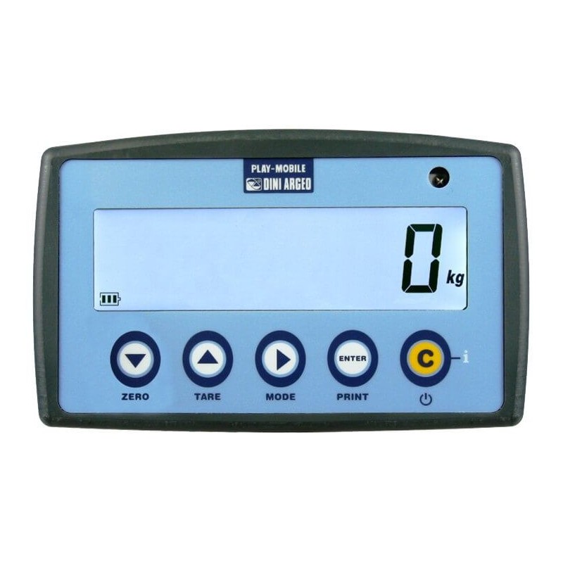 Ripetitore di peso portatile in radiofrequenza, con contenitore in ABS, tastiera a 5 tasti, display LCD retroilluminato, porta USB e memoria per salvataggio pesate di serie.