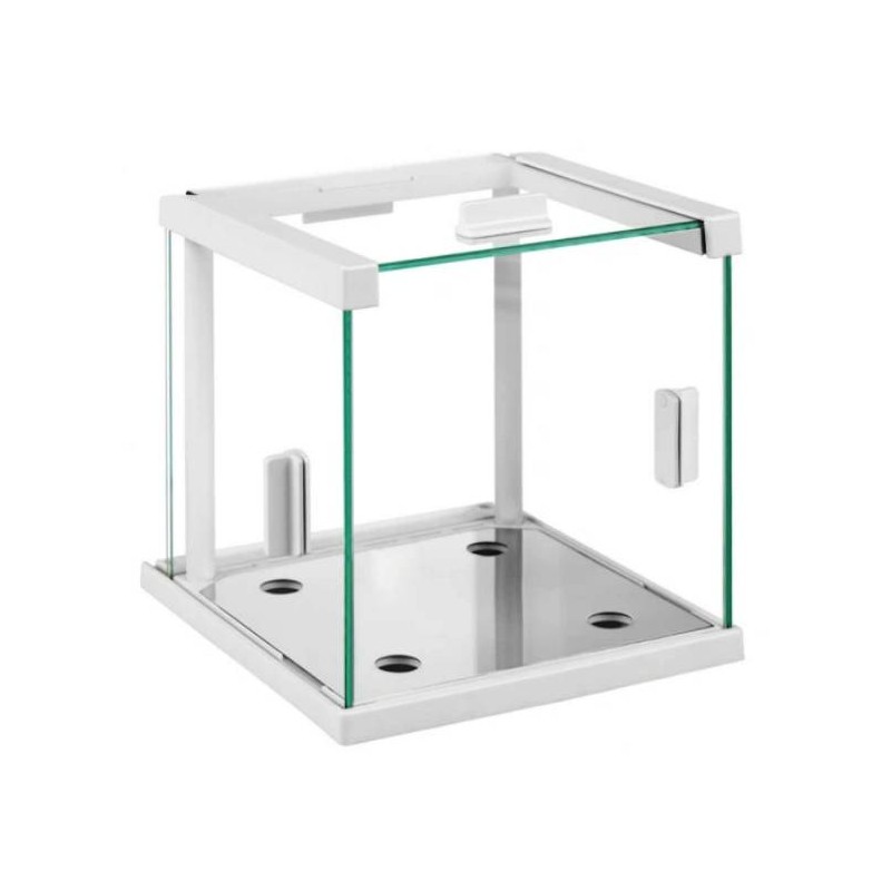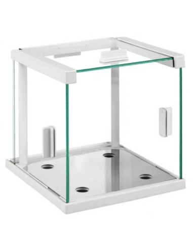 La camera di protezione da correnti d’aria e stata progettata per bilance che utilizzano un piatto di pesata 128 x 128 mm. E’ un equipaggiamento opzionale pensato per bilance che devono lavorare in condizioni non ottimali (ambienti con flussi d’aria o correnti d’aria). Viene installata al posto dello schermo di protezione di serie. La camera prevede porte di accesso scorrevoli superiore e laterali per permette un acesso completo al piatto di pesata.