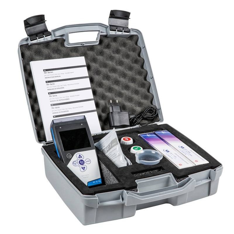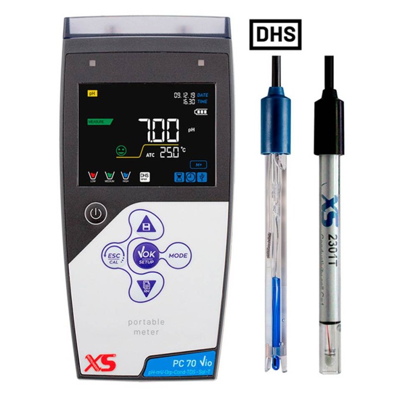 XS PC 70 Vio misuratore multiparametro professionale portatile per misura di pH, mV, ORP Redox, Conducibilità, TDS, Salinità con visualizzazione della temperatura. Funzioni GLP: Data ed ora, visualizzazione dei dati di taratura ed impostazione scadenza di calibrazione. Data Logger manuale ed automatico con possibilità di scarico dati a PC tramite micro USB. Software Data-Link incluso.